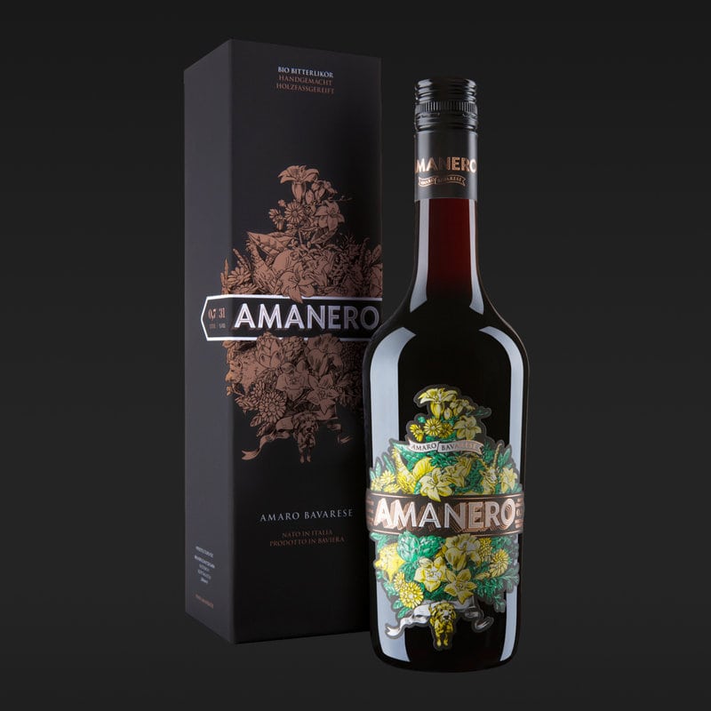 Unser handgemachter, holzfassgereifter Bio-Kräuterbitter ist ein Füllhorn des Geschmacks aus über 30 Kräuteressenzen. Er wird monatelang im Holzfass gelagert und reift zu einem unvergleichlich feinen, komplexen Amaro heran. Amanero ist streng limitiert und wird in höchster Bio-Qualität von Hand hergestellt. Ein Genuss als Digestivo pur auf Eis oder als Grundlage für köstliche Drinks – Nato in Italia, Prodotto in Baviera.